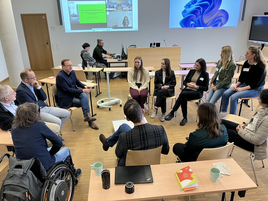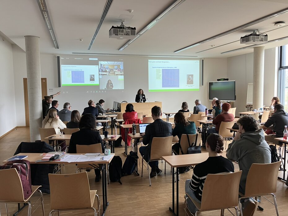 Nach einer kurzen Begrüßung begann direkt der erste Vortrag. Warum bleiben manche Inhalte haften, während andere schnell verblassen? Prof. Dr. Magdalena Abel erklärte in ihrem Vortrag zu Retrieval Practice: Menschen lernen besonders gut, wenn man versucht, ohne Hilfe Gelerntes wiederzugeben. Für diese Lernmethode gibt es aktuell in der Schule zu wenig Raum. Dabei hilft genau dieser Selbsttest, dass man das Wissen lange behält.