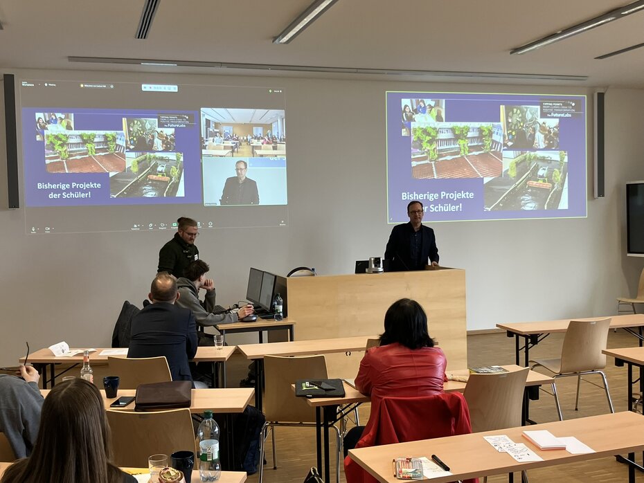 Internationale Einblicke kamen von Tatjana Kajala, die aus Finnland via Live-Schaltung berichtete, wie dort Phänomen-basiertes Lernen mit Virtual Reality, europäischer Kooperation und nachhaltigen Projekten praktisch umgesetzt wird. Ähnlich arbeiten Schülerinnen und Schüler der Walther-Rathenau-Schulen in Schweinfurt: Im ‘FutureLab’ entwickeln sie – so Oliver Kunkel, der Gründer – mit Universitäten und Wirtschaftspartnern innovative Lösungen für Stadtbegrünung, nachhaltige Landwirtschaft und schwimmende Photovoltaik in Ghana.